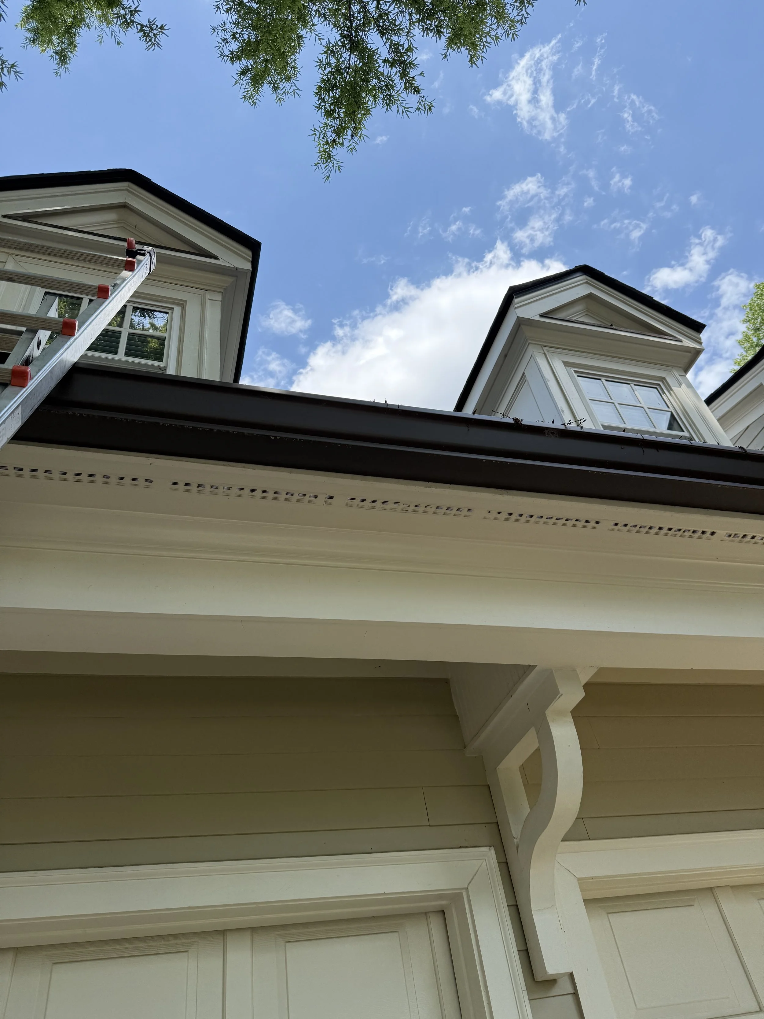 We work carefully and cleanly inside and out. Indoors, drop cloths and shoe covers protect floors while padded, leveled ladders keep walls and trim safe. Outdoors, we practice OSHA-approved ladder techniques and plant-safe rinsing. Copper and rounded gutters get extra care; whitening washes help lift common debris stains (note: severe oxidation may require paint). Every visit ends with before/after photos and a quick report on any roof or gutter issues we spot, so you’re never in the dark.