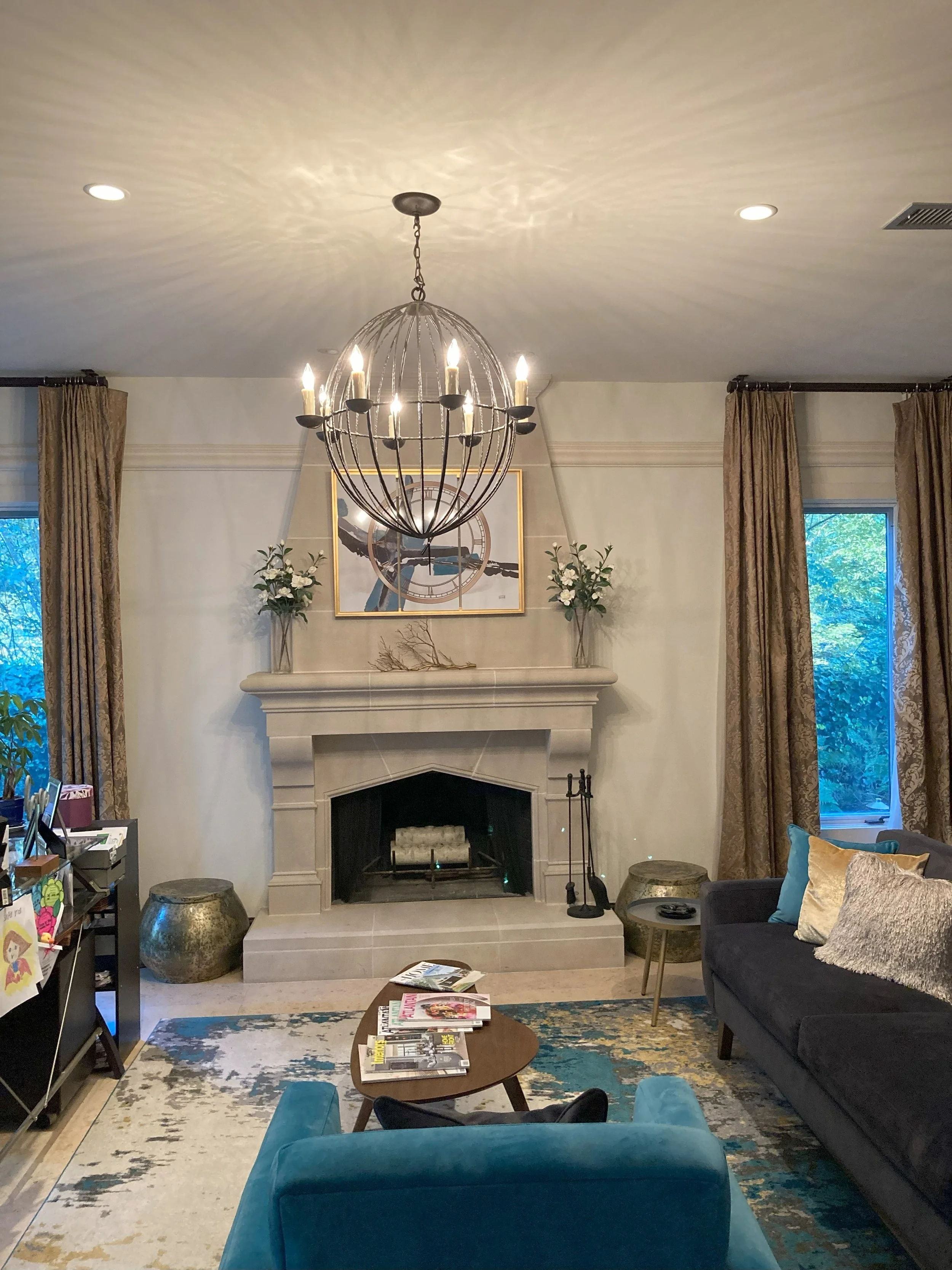 Heavy or complex fixtures are our specialty. We assemble on site, remove and dispose of the old fixture, adjust chain and height, install dimmers or decorative medallions, and upgrade hidden ceiling bracing when needed for safety. Most installations are handled by ladder up to 20ft; for taller foyers or stairwells, we arrange scaffolding or a lift. For hardwired electrical and permitting, we partner directly with a licensed electrician, so everything is done safely and correctly - no headaches for you.