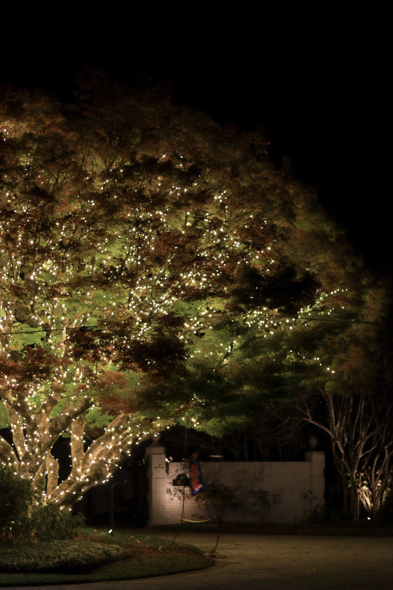 On trees of different sizes, we keep the wrapping measured and consistent from trunk to twig. Our uniform work downplays individual sections and even the overall amount of lights so you only see the natural beauty of your trees highlighted with a single cohesive weave of light. Warm white light colors keep it cozy and upscale, and dimming lets you dial the scene without losing clarity.