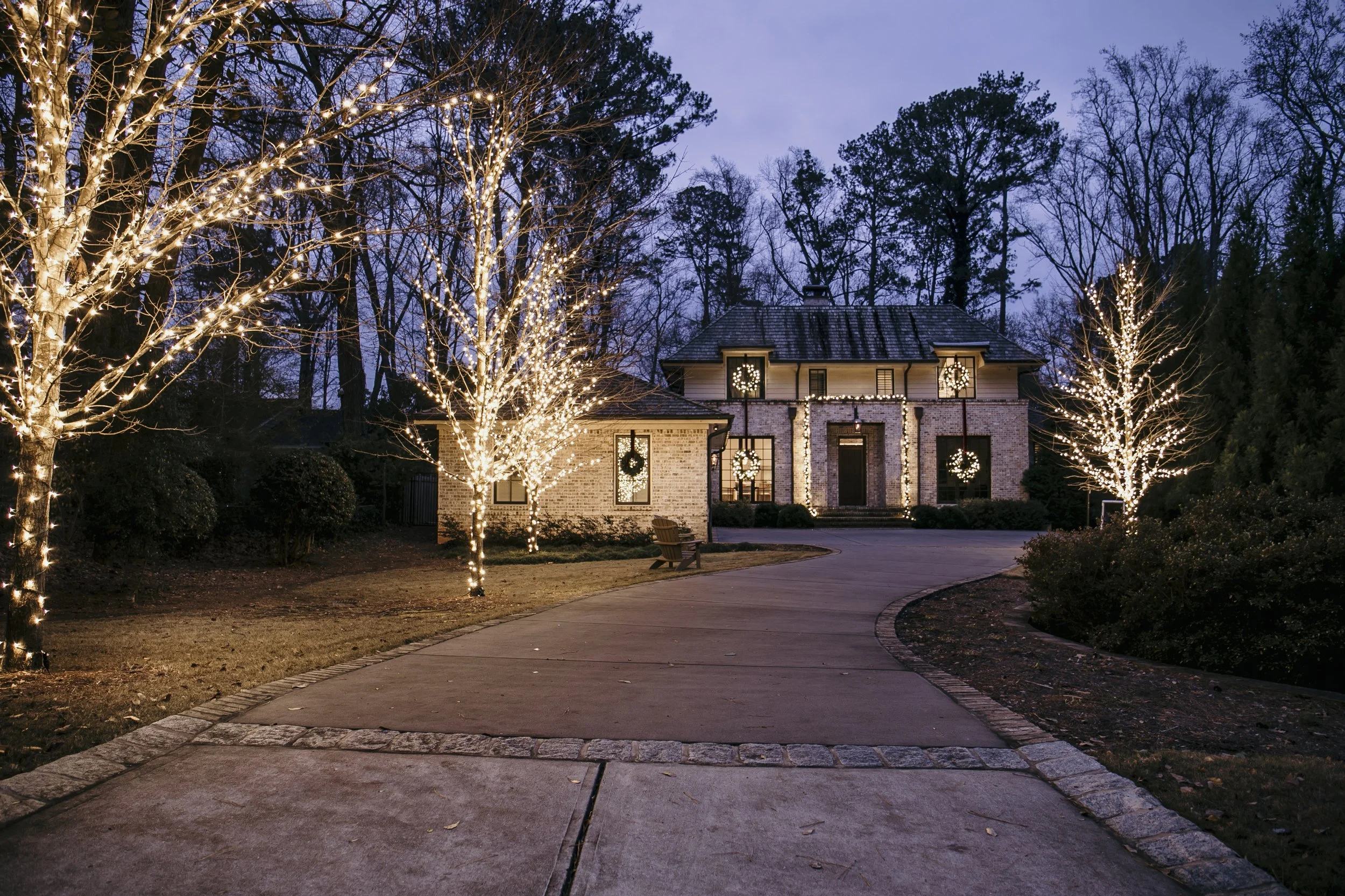 Lighting is optional and elegant. Warm-white mini-lights create a candle-like glow woven discreetly through wreaths and garland. If you prefer an unlit, organic look, the layered textures do the talking. Either way, cords are hidden, schedules are simple (think dusk-to-dawn), and the overall effect is welcoming without feeling fussy. When the season ends, we haul away and store for you. The result is decor that feels genuinely fresh and thoughtfully designed, bringing traditional Christmas warmth to a modern home in a way that feels both luxurious and inviting.